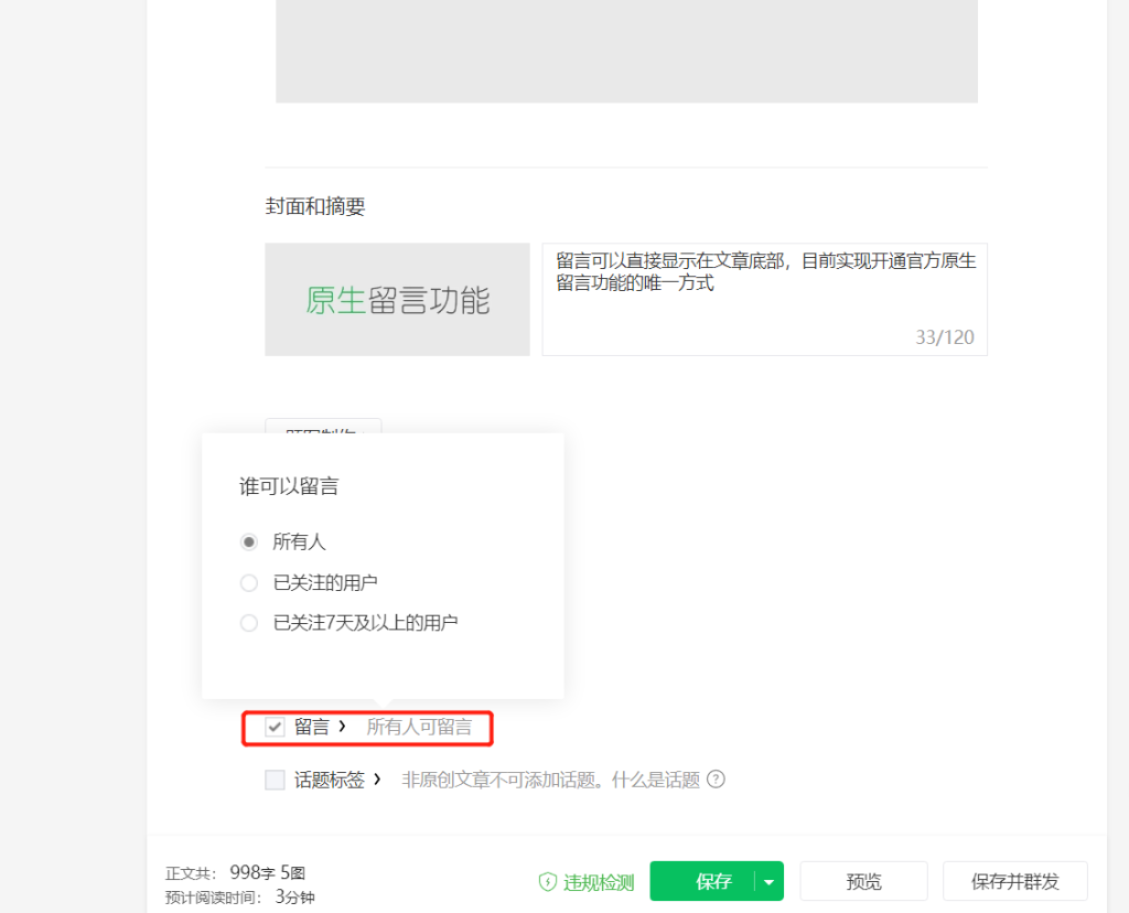 - 提高收益。大多数广告主只选择有留言功能的公众号去投放广告(因为能看到粉丝互动率,留言越多,说明粉丝活跃度越高,带货效果越好),没有留言功能将错失变现机会;