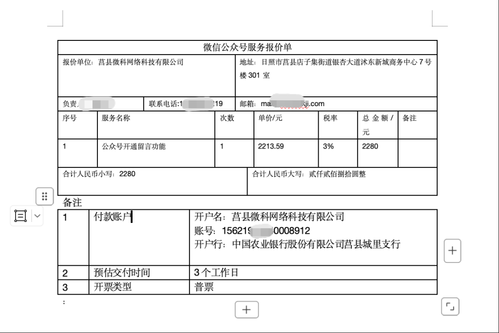 - 企业公众号1~2个工作日即可开通留言功能,最快可当天开通。